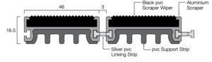 Esplanade 1500 is constructed from either 100% polypropylene wipers from the Boulevard 1500 range or black pvc scraper wipers supported with an aluminium base and pvc bridging strips that provide additional strength.